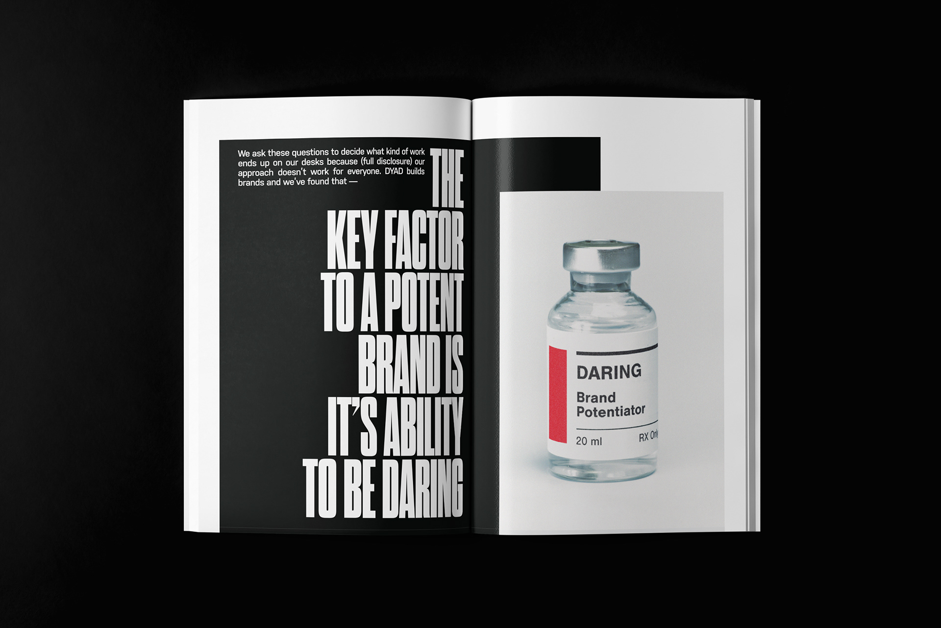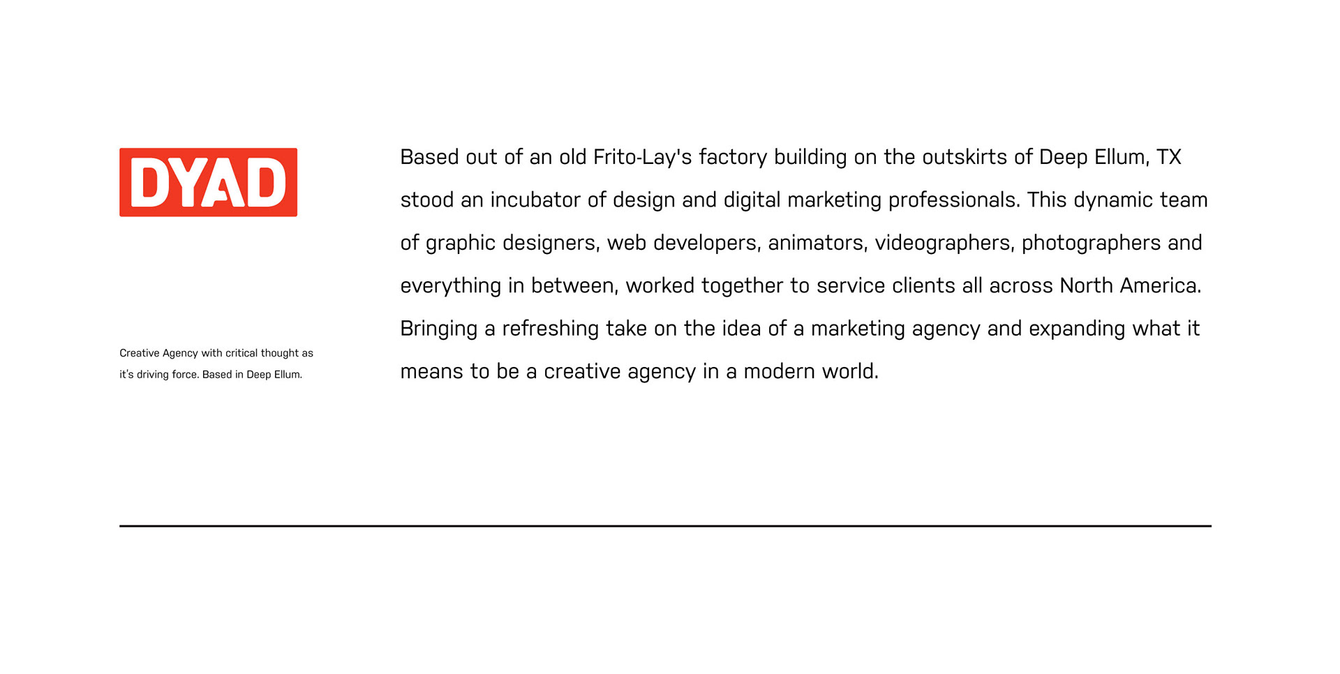 After nearly 6 years of work, DYAD decided to put everything together into one overview to showcase it's brand identity and voice. This project covers an overview of the website as well as company marketing material and graphic style. DYAD wanted to give their prospects an insight on who they are as an agency and a team to better position themselves with customers who have the same vision as them; to impact.